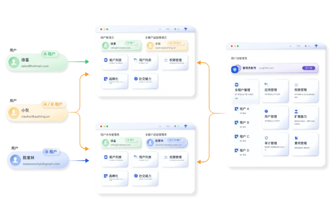 - 独立用户目录与凭证库:不同企业的员工、管理员和应用数据完全独立存储,杜绝跨租户访问风险。