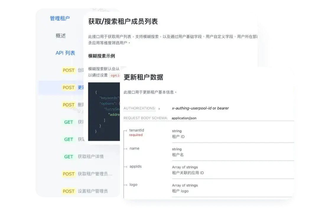 Authing 的租户级 API 管控机制确保了平台的可扩展性与安全性。通过细粒度的 API 权限控制与调用隔离,分销商可以安全地访问和管理自身的数据与用户资源,而不会影响其他租户或平台核心系统。Authing 还支持基于租户 ID 的请求签名验证、访问日志审计与速率限制,确保在多方接入的复杂场景中,平台依然能够维持高性能与高安全。