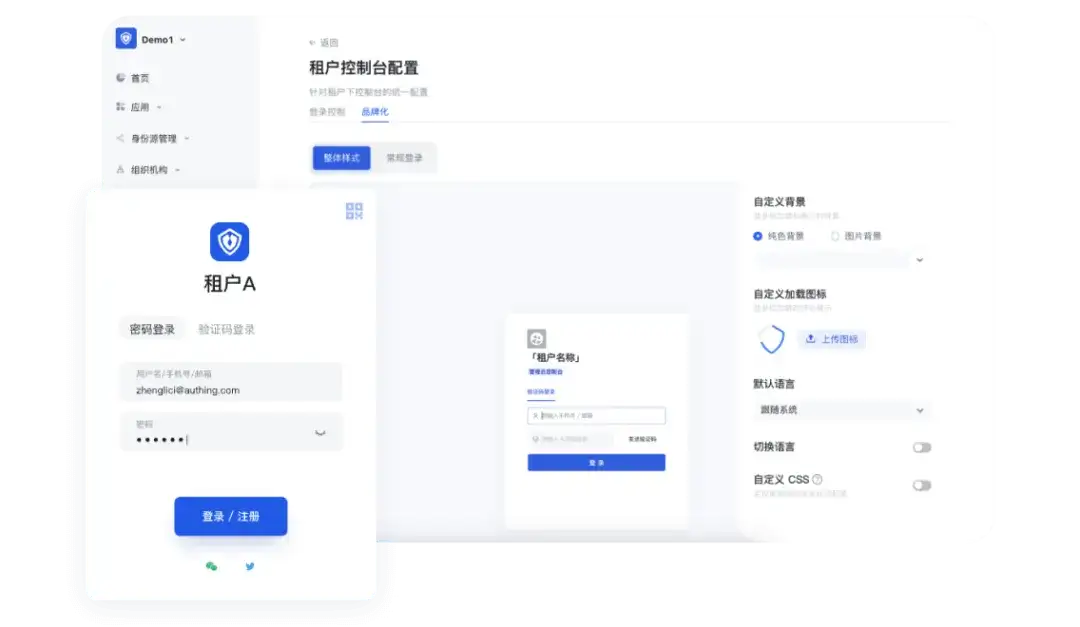 多租户架构中,真正的价值不仅在于“如何统一管理”,更在于“如何赋能每个租户”。Authing 不只是让平台管理员能够高效地配置租户、分配权限、监控安全事件,更让每个租户都能拥有属于自己的身份系统。每个租户都可以在自己的独立空间中,灵活配置品牌化的登录页、个性化的认证流程与安全策略。例如,不同企业可以自定义登录界面风格、Logo、配色方案,使用户在进入系统的第一刻就感受到专属的品牌体验。租户还可自由选择适合自身业务的认证方式,无论是邮箱密码登录、短信验证码、扫码登录,还是多因素认证(MFA),都能在几分钟内轻松启用。Authing 让每一个租户都能成为自己用户体系的“主人”,在统一安全框架下拥有充分的自主权与创造空间。