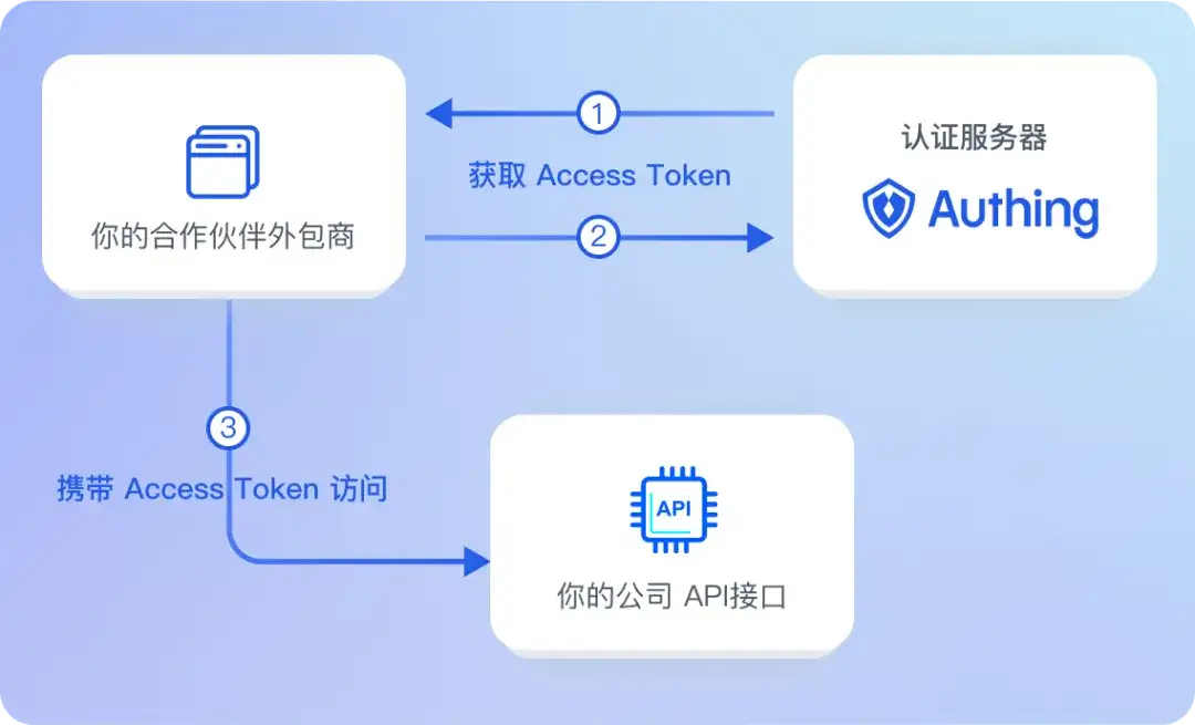 你想要将自己的业务 API 部分地开放给其他人,并且是无用户参与的应用间授权,可以通过 Authing 的 M2M(Machine to Machine)能力进行鉴权,确认来访者是谁,有哪些接口的访问权限。