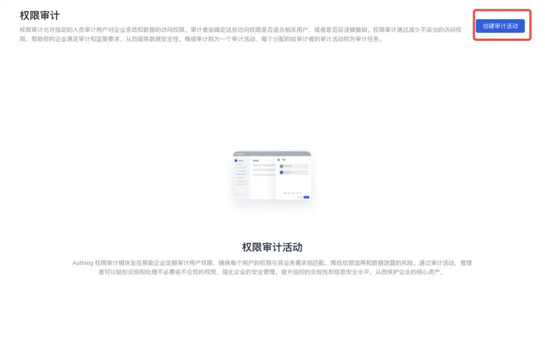 如果认证和授权是“事前”安全,那么审计就是“事后”安全。真正的统一身份体系必须能够记录用户从登录、操作到权限变更的全过程,形成一条完整的行为链路。在安全事件、合规审查、渗透排查中,企业才能从容回答“谁在什么时候做了什么”。没有统一审计,所有的安全都只是表面功夫。Authing 的集中化审计能力,能够让身份行为一目了然。每一次审计活动都将被系统完整记录,包含发起人、审计目标、执行时间和审计进度等。通过标准化的审计活动模型,企业能够将权限审计流程系统化、规范化、流程化,告别手工追踪与权限“散管”的风险。