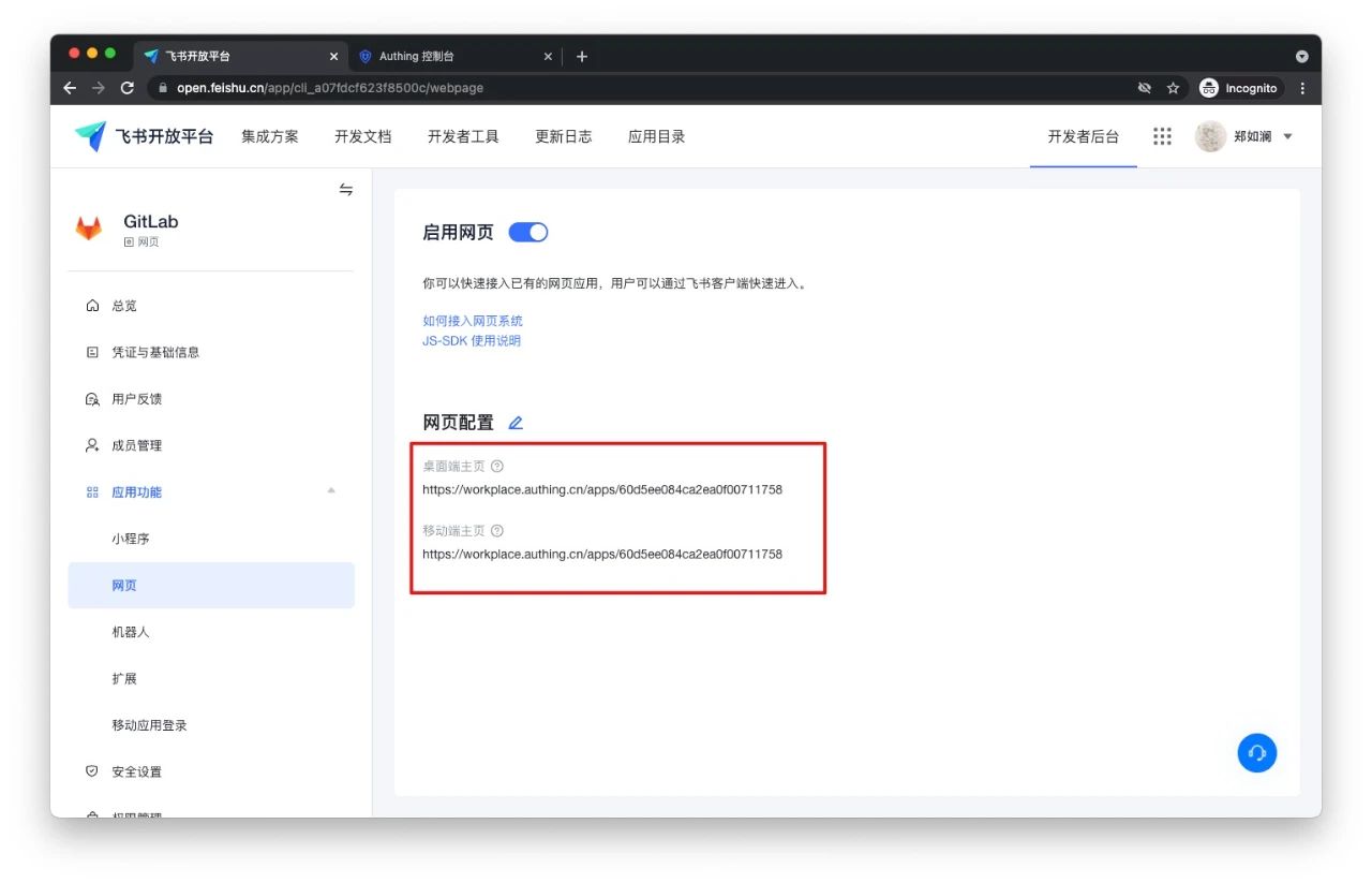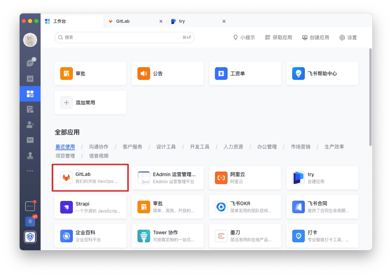 步骤二:以 GitLab 为例,使用飞书账号单点登录 GitLab