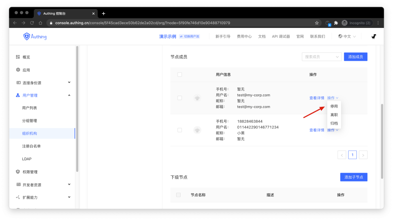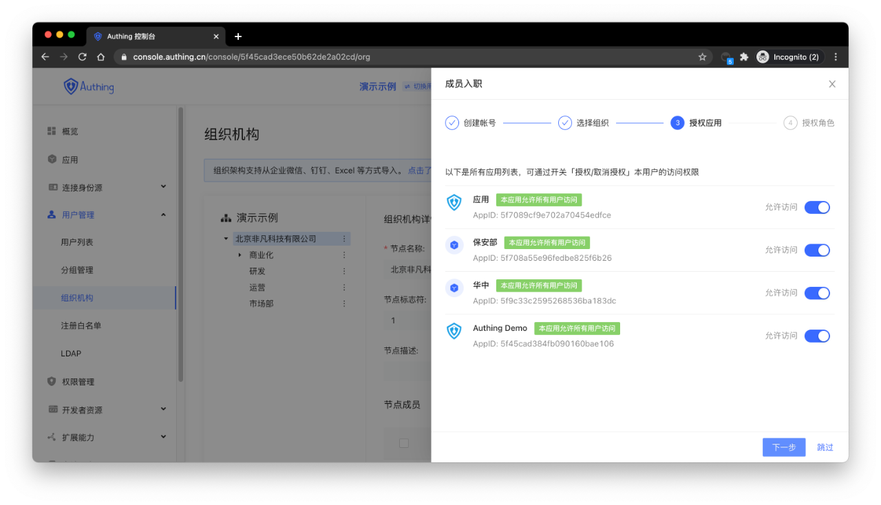 步骤三:控制台设置账户权限,自动化管理成员生命周期